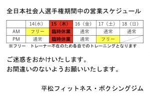 9月14日(水)~18日(日)の営業は 表の通りです。