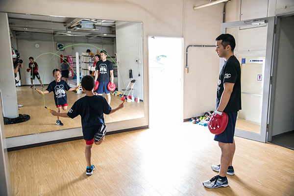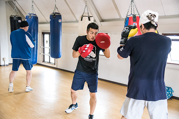 トレーナーの持つミットにめがけて、パンチを打ってみましょう!