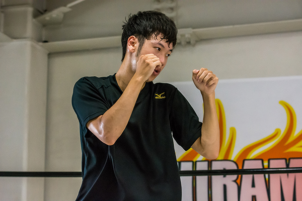 パンチ動作の練習・確認。相手と実際に闘っているようなイメージで動いてみましょう!